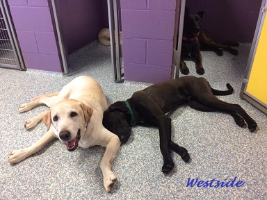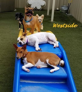 Sleepovers are the most popular boarding option. Sleepovers are reserved for dogs that have already passed their Playgroup Compatibility Evaluation. A sleepover guest wakes up first thing and goes out with the playgroup for a potty break. Next is back to their room for breakfast. After breakfast everyone