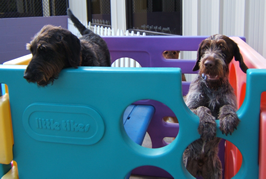 So, the question on some people's minds regarding doggie day care is: "Can my dog be injured?" The best analogy to describe how safe doggie daycare really is would be to compare it to letting your child play on a playground. Your child can fall off the slide and break a leg, catch a cold from another kid (playgrounds don't require vaccine records like we do), run into a bully, get a scratch from rough housing with the boys, etc. Most people wouldn't think twice regarding such contingencies. Unless you keep your child in a padded room (or a crate as in your dog's case), you have to be ready and responsible for accidents like these. You know how great the benefits are of letting your child play and have a good time with other children. So, why does it seem so different when it happens to dogs? Well, dogs don't play with hands; they play with paws, claws and teeth. If your dog is a playgroup member, you may occasionally see a scratch or two. However it is rare for any major altercations to occur. The few injuries that do happen are actually the result of play.