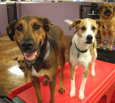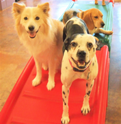 During our evaluation, front-of-house staff take time to discuss with the dog's owner any potential problems/concerns. Our next step is to introduce the new dog -- one at a time -- to the other dogs in daycare. We are very selective about the dogs we introduce first, using those that attend daycare frequently and do well amidst a variety of personalities. As the dog acclimates to his new surroundings, staff keep a watchful eye for any signs of aggression. Posturing is to be expected. A new dog may emit a nervous growl to let the other dogs know that he needs some space. Overt aggression and lunging at other dogs, however, is not tolerated at Pawtropolis.