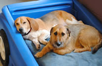 Don't be surprised if you catch your dog napping. Normally during the day at home while their owners are gone, dogs are asleep, so it is normal for them to want to take some naps here as well. Also, play comes in cycles. Sometimes the whole group will be playing, other times they may all be passed out. Some dogs have difficulty regulating their own play. Breaks are VERY important for the dogs. 8-hours of non-stop play leaves a dog worn out and grumpy. Staff enforces breaks sporadically throughout the day to help each dog get the rest he or she needs.
